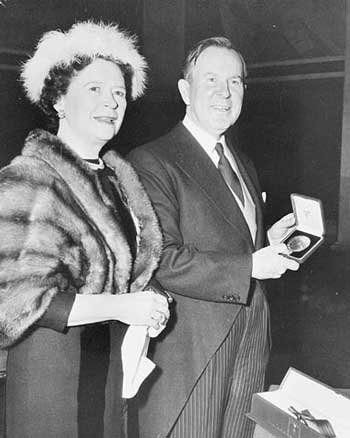 That's Lester left, a profoundly decent, and humble humanitarian, who defined Canada as "the Peacemaker" for the world, during the entire 20th century, shyly showing his wife Maryon, the Nobel Peace Prize which he was proud to accept for Canada.