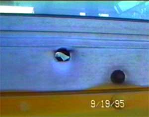 Bullet holes beside where Ugga was sitting in the bus...