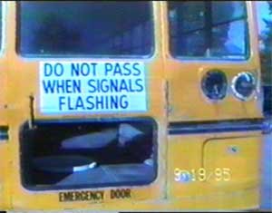 The bus windows shot out by the OPP machine gun fusillade. Inside had been16 year old Ugga, and 14 year old Leland and his dog.