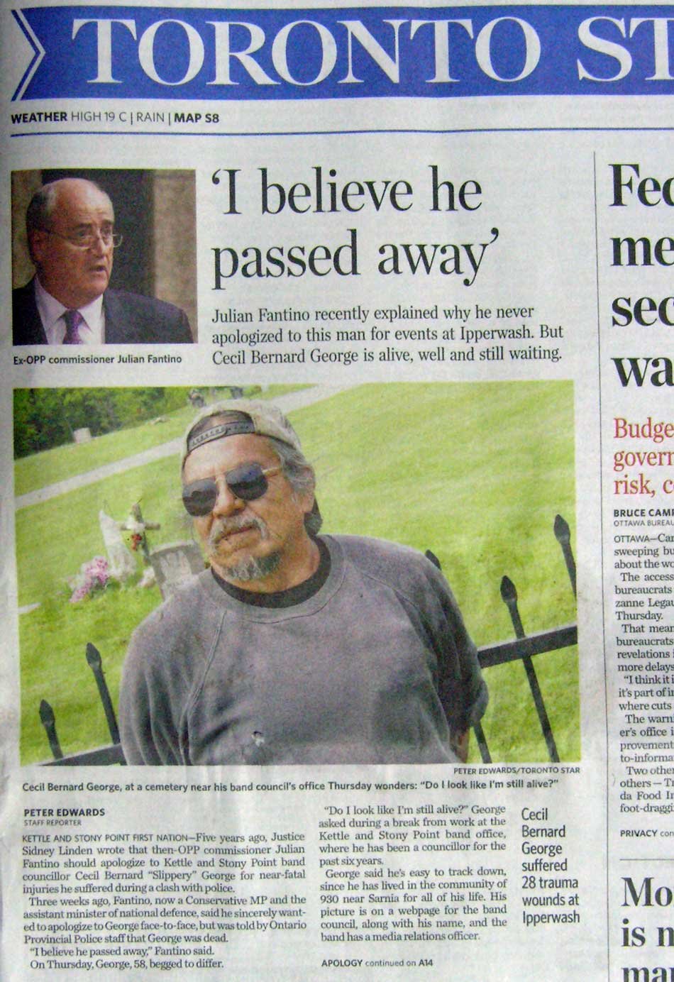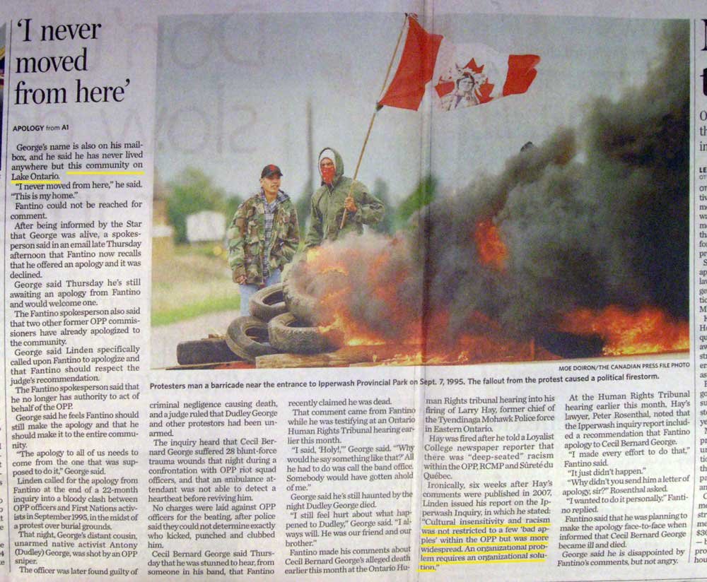 And nope, not even a single word of apology to Bernard George, from the OPP Commissioner, for his officers beating this Kettle Point councilor close to death, even though the Inquiry's Justice Linden recommended it.