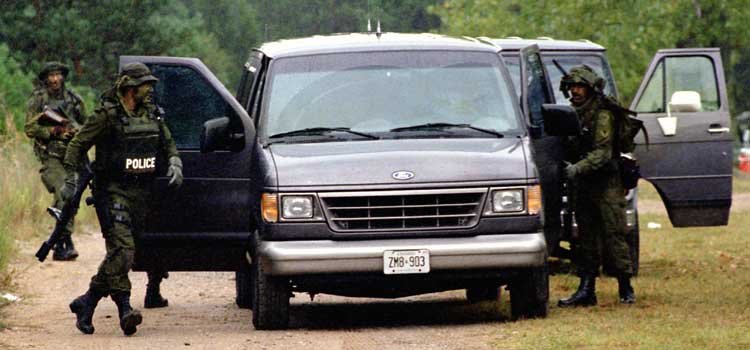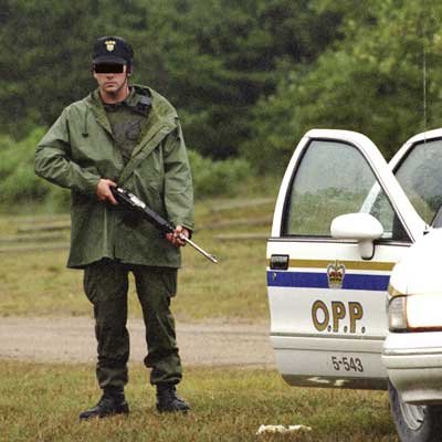 (Both the OPP and CSIS (Canadian Security Intelligence Service) had armed guerrilla scouts in camouflage hiding in the bush spying on the Indians all during the Ipperwash confrontation, many of them quite illegally inside Ipperwash Park itself. Both OPP and CSIS denied this illegal activity by its members but lots of evidence recounted by Stoney Pointer's own security forces showed the police were lying about this as well.)