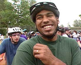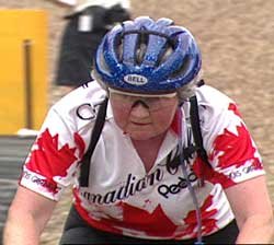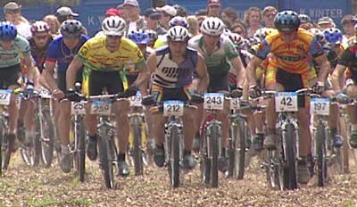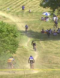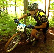 The thrill of cross-country biking attracts young and old (one enthusiastic woman is over 60) and even the disabled (one races with a prosthesis. (DVD Cover, right)