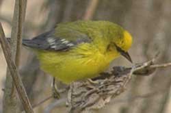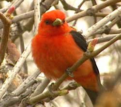 Birders might see a passing Tundra Swan (left) or a Scarlet Tanager (below). But the warblers, tiny birds flitting around the branches, are a special treat: (clockwise) the Blackburnian, the Black-throated Blue, or a rare sighting of a Blue-winged.