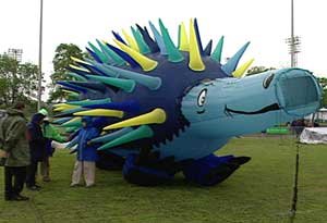 Anne Harris ( left) prefers making monster kites. "They're balloons really. To please the children. Kimberley the Kangaroo and Spike the Ant-eater." |