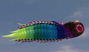 Anne Clement and Yves Laforest , met while kiting and now own the biggest kite flying shop in Quebec and make the biggest kite in Canada, the monster caterpillar (below). |