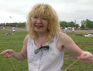 | Ardith Quanbury (right) is a member of a kite flying team and relaxes by flying two kites at once |