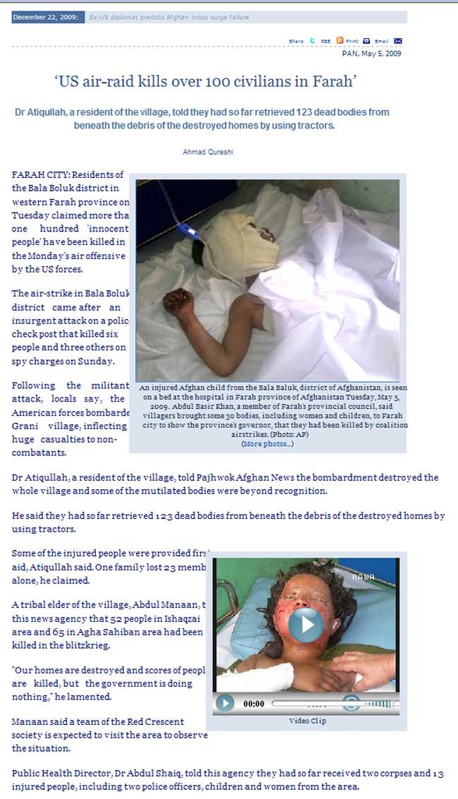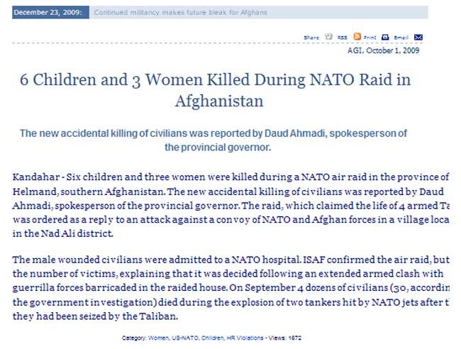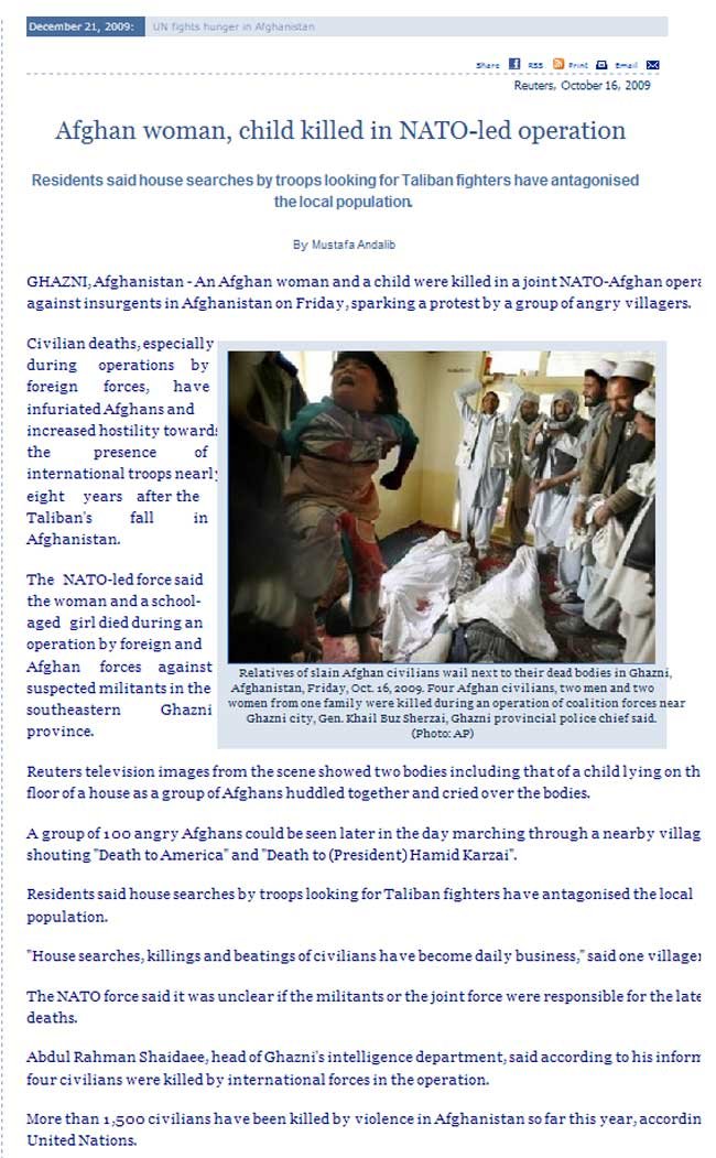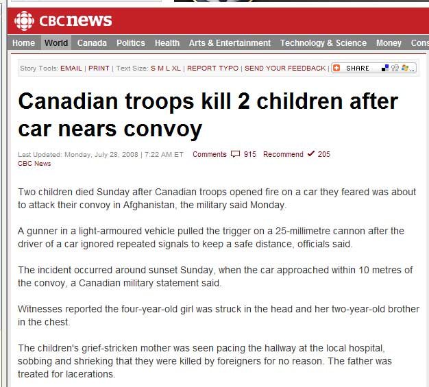 Exactly the same media censorship is going on in 2009, about the huge toll of civilians killed by Canadians and their NATO partners. Why, first because the media barons that run the media are Judeo-Christian and don't think Muslims are human beings like the rest of us; secondly it would make the war look bad instead of glorious, worthy, and wonderful. |
