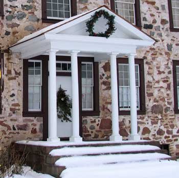 The porch does protect the entrance way from snow and rain but defeats the purpose of another common Georgian feature: the sidelights and transom light that were designed to bring light into the otherwise windowless central hall of the lower floor. The porch darkens the hall considerably, especially in winter.
