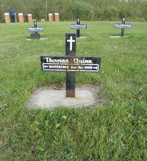 Left the grave of the man he killed, the cantankerous and unfeeling Indian Agent Thomas Quinn, and the cross on the spot where he did it, at Frog Lake, in remote north eastern Alberta.