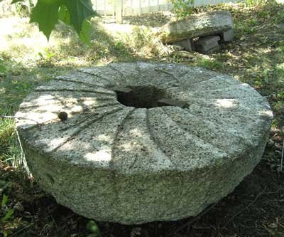 The mill wheels, that once ground the grain for the household, now lie forlorn and forgotten in a corner of the lot