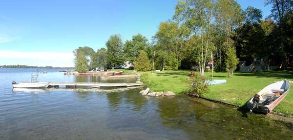 The site of the Moodie Homestead, on the point of land below the Moodie Farm. Today the lakeshore is occupied by rental cottages.